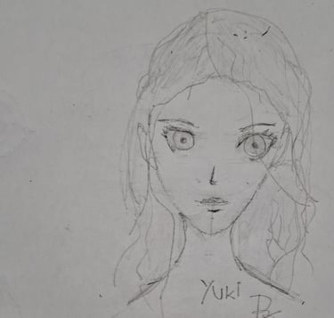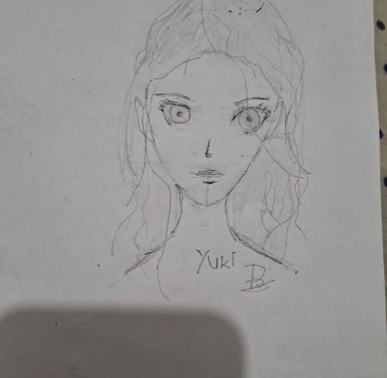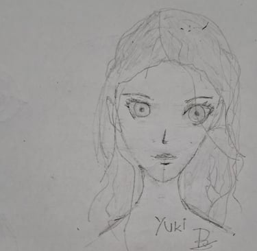 Gosto de deixar rascunhos de quando começo a criar um personagem, na imagem a seguir, minha primeira versão da Yuki.